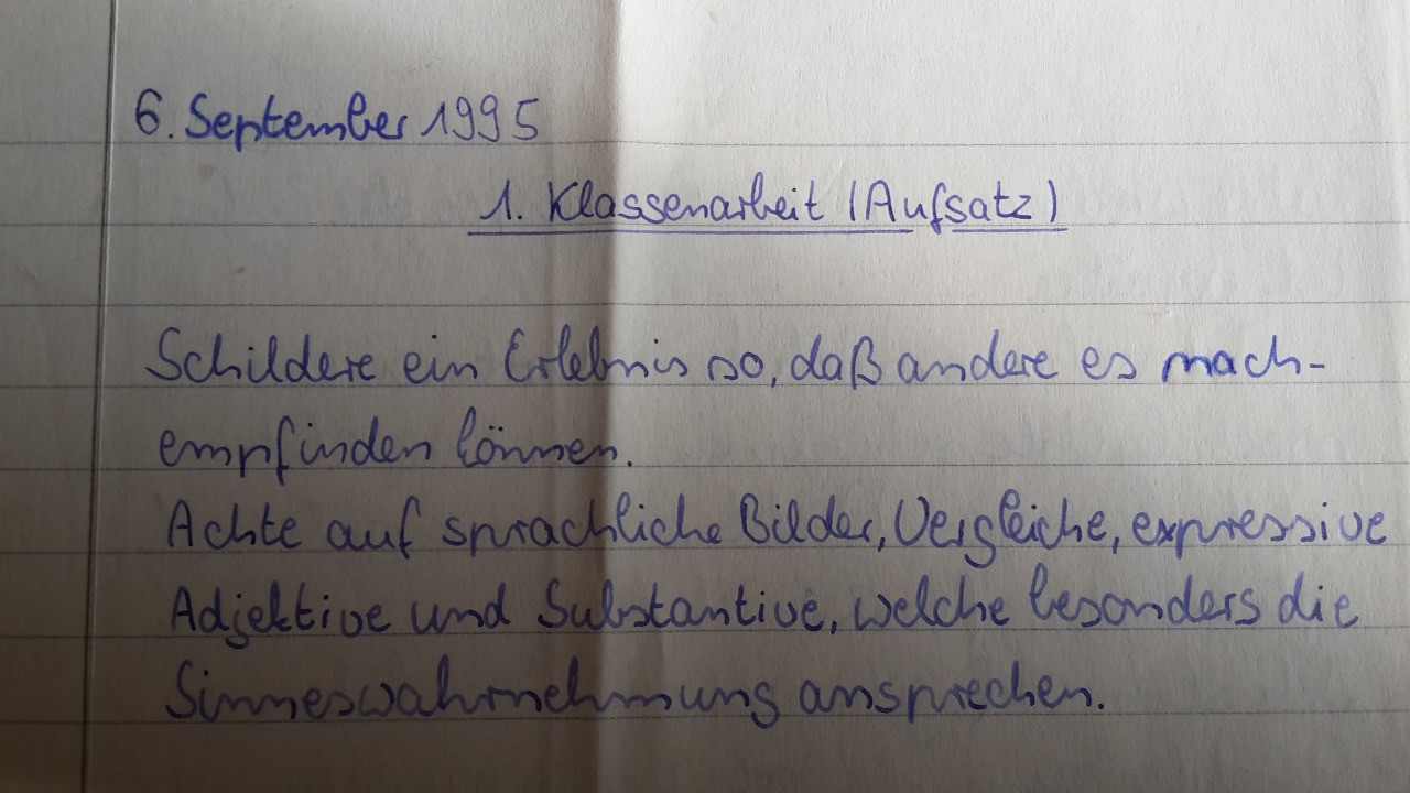 Das Blatt Papier, auf dem ich diesen Aufsatz vor fast 25 Jahren geschrieben habe, liegt in einer alten Kladde, in